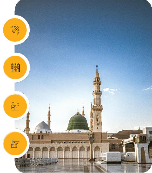 We take care of hotel bookings, ground transfers, and guided Ziyarah tours, ensuring a smooth and spiritually fulfilling experience in Makkah and Madinah.